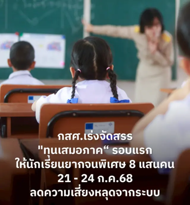 มาแล้ว! โครงการทุนเสมอภาค สนับสนุนนักเรียนยากจนพิเศษ 8 แสนคน เปิดระบบบันทึกข้อมูลรอบใหม่ วันนี้ - 21 กรกฎาคม 2568 ป้องกันเด็กหลุดจากระบบการศึกษา