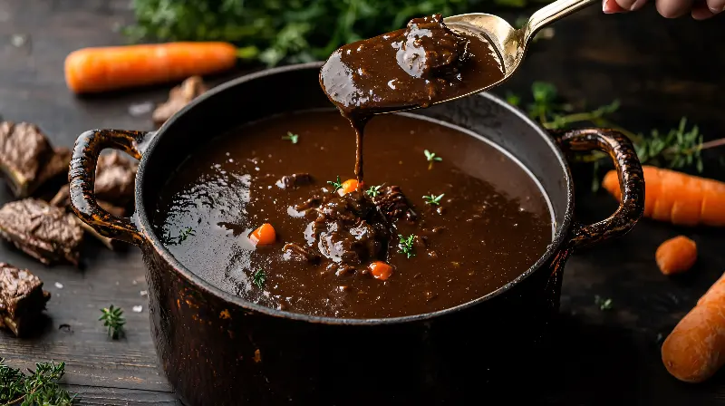 Espagnole, or "brown sauce," is the most robust and complex of the mother sauces. It is rarely served on its own but is instead used as the starting point for the richest reductions in the culinary world.