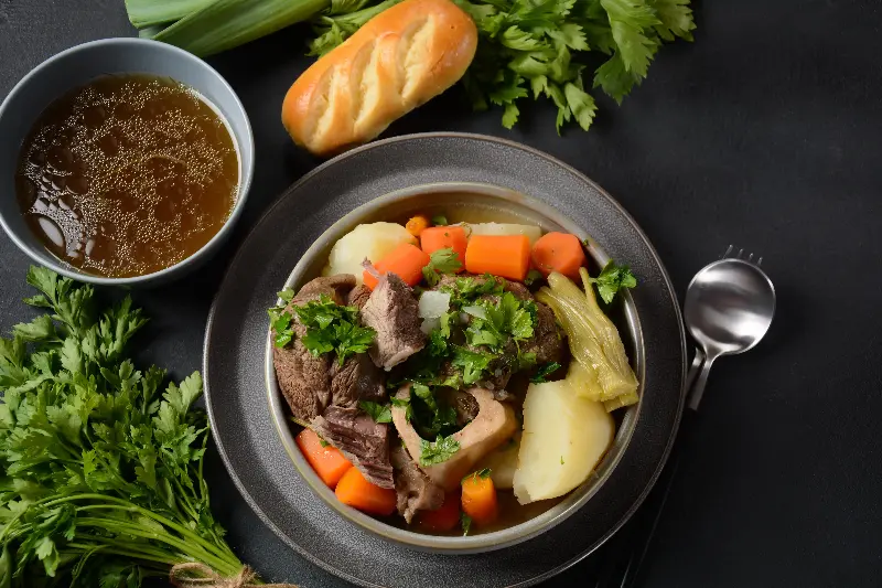 Pot-au-feu, considered a classic winter favorite, takes a subtler approach. Translating to “pot on the fire,” this dish brings together cuts of beef, root vegetables, and aromatics, all gently simmered in water. The broth is often sipped first, with the tender meat and vegetables followed after. It isn’t just a meal — it’s a ritual, a slow unwinding of warmth and tradition at the table.